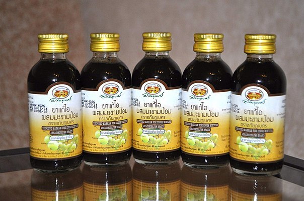 Тайская микстура от кашля, приготовленная на основе растения эмблики, применяется при кашле сухом и мокром, простуде легкой и не очень, бронхите начальном и хроническом. Помогает курильщикам при характерном кашле. Облегчает состояние больного бронхиальной астмой.
